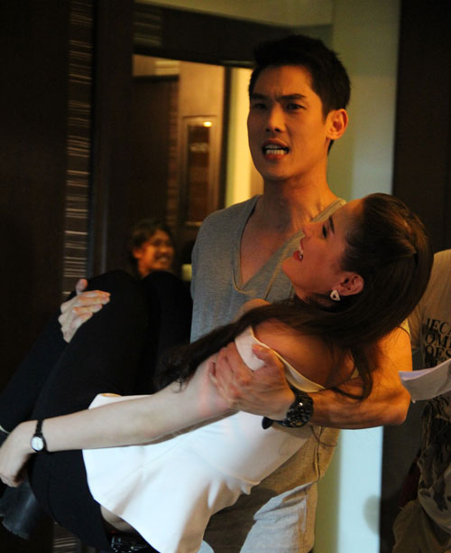 ฉากนี้เป็นฉากที่ณฉัตรจะต้องเย้ายวนชวนให้กันต์เคลิ้ม ก็ทำเอาณฉัตรเกร็งไปทั้งตัว โดยฉากนี้ผู้กำกับอยากให้ณฉัตรสวมวิญญาณเป็นสาวอกหักช้ำรักเพราะอาการเมา ส่วนกันต์ก็ต้องโชว์ความเป็นสุภาพบุรุษแนวโคเรียสไตล์ที่ต้องอุ้มนางเอกสาวขึ้นเตียงราวกับเป็นเจ้าหญิง และเพื่อความไหลลื่นผู้กำกับก็เรียกทั้งสองคนมาซ้อมกันก่อน จนเข้าใจกันอย่างดีก็เลยลงมือถ่ายทำกันจริงเลย แต่พอถ่ายทำจริงณฉัตรก็ออกอาการหน้าแดงเป็นลูกตำลึงเพราะเขินที่ต้องถูกกันต์อุ้ม