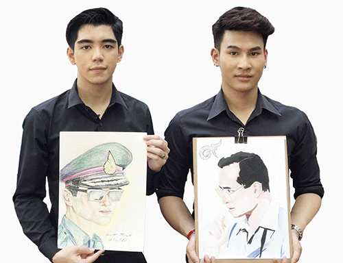 ไปป์ เสริมต่อว่า “ผมกับ กรีน ก็ได้มาชมพระบรมสาทิสลักษณ์ของพ่อหลวง ได้มารู้รายละเอียดเรื่องราว ก็ภูมิใจมากครับที่ประเทศไทยมีพระมหากษัตริย์ที่รัก และทรงดูแลประชาชน รวมถึงได้ทรงงานมากมายนับไม่ถ้วน ซึ่งพอได้มองภาพก็อดคิดถึงพระองค์ท่านไม่ได้ครับ ผมกับกรีน ก็มีโอกาสได้มาร่วมวาดภาพในหลวงกันด้วย ยอมรับว่ารู้สึกเกร็งครับ เพราะไม่เคยวาดมาก่อน แต่พอใช้สมาธิวาดจากความรู้สึก เลยอยากทำผลงานชิ้นนี้ให้ดีที่สุดเพื่อพ่อหลวงครับ”