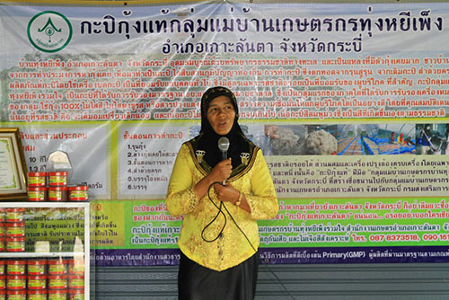 ศึกษาดูงานกลุ่มแม่บ้านเกษตรกรทุ่งหยี่เพ็งร่วมใจ ต.ศาลาด่าน อ.เกาะลันตา ซึ่งเป็นวิสาหกิจชุมชนที่สืบสานภูมิปัญญาท้องถิ่นในการทำกะปิจากกุ้งเคย โดยเจ้าพนักงานเคหกิจเกษตรเข้ามาสนับสนุนจัดตั้งเป็นกลุ่มแม่บ้านเกษตรกรตั้งแต่ปี 2540 และเป็นกลุ่มแรกในภาคใต้ที่ได้รับการรับรองเครื่องหมาย อย.รวมทั้งยังได้รับการรับรองเครื่องหมายฮาลาล ปัจจุบันมีเครือข่ายร้านค้าที่รับกะปิไปจำหน่ายถึง 150 ร้าน โดยยอดการผลิตและจำหน่ายเพิ่มขึ้นอย่างต่อเนื่อง โดยปี 2558 ยอดผลิต 26,425 ก.ก.มูลค่า 2,906,750 บาท ส่วนปี 2559 ตั้งแต่เดือน ม.ค. - ก.ค.มียอดผลิตแล้วกว่า 16,247 ก.ก.มูลค่า 1,787,170 บาท