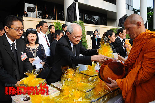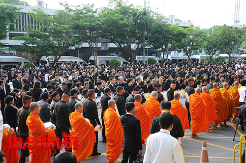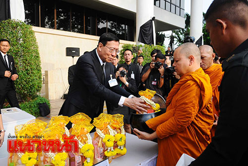 19 ต.ค. 59 ที่รัฐสภา นายพรเพชร วิชิตชลชัย ประธานสภานิติบัญญัติแห่งชาติ (สนช.) ให้สัมภาษณ์ภายหลังจากการเป็นประธานในพิธีประธานในพิธีทำบุญตักบาตรพระสงฆ์ 89 รูป เพื่อน้อมเกล้าน้อมกระหม่อมถวายเป็นพระราชกุศลแด่พระบาทสมเด็จพระปรมินทรมหาภูมิพลอดุลยเดช ว่า กิจกรรมดังกล่าว แสดงถึงความจงรักภักดี และแสดงถึงความอาลัยในพระบาทสมเด็จพระเจ้าอยู่หัวฯ ซึ่งได้รับความร่วมมือเป็นอย่างดี และที่น่ายินดีก็คือบรรดาสมาชิกฯ ต่างก็ซาบซึ้งในพระมหากรุณาธิคุณและมาร่วมแรงร่วมใจกันอย่างคับคั่ง โดยทาง สนช. ก็จะน้อมนำพระปฐมบรมราชโองการที่ว่า ‘เราจะครองแผ่นดินโดยธรรม เพื่อประโยชน์สุขแห่งมหาชนชาวสยาม’ ซึ่งเป็นหลักที่พระองค์ในฐานะผู้นำหมายเลขหนึ่งประเทศ ที่ปกครองแผ่นดินโดยธรรม ก็หมายความว่า ท่านปกครองคนอื่นโดยธรรม คนอื่นๆที่ลดหลั่นลงมาหรือผู้ที่ได้รับพระบรมราชโองการ จะต้องปฏิบัติหน้าที่เฉกเช่นเดียวกับพระองค์ท่าน นั่นก็คือการยึดหลักความเป็นธรรมและพระองค์ท่านจะเน้นเรื่องความผาสุกของประชาชนชาวสยาม ซึ่ง สนช. ก็ถือเป็นข้าราชการในพระองค์พระบาทสมเด็จพระเจ้าอยู่หัวฯ ซึ่งจะต้องปฏิบัติตนตามแบบอย่าง