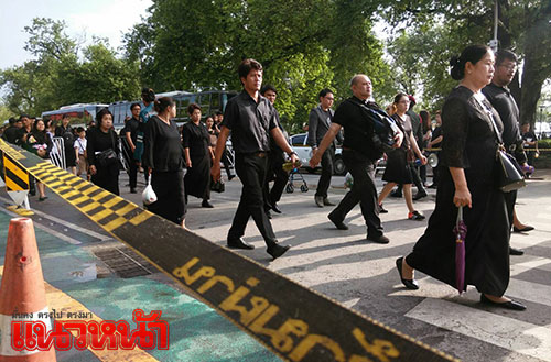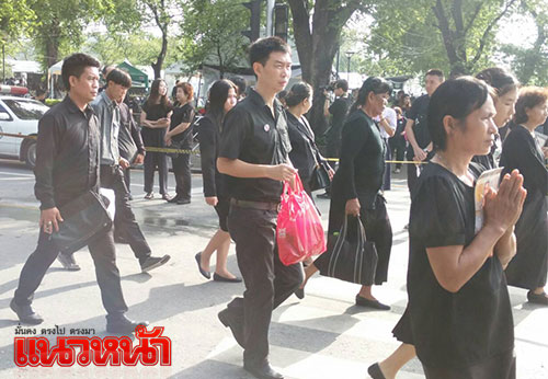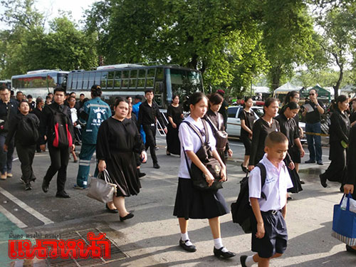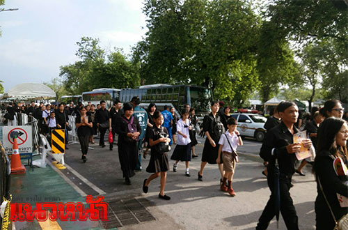 30 ต.ค.59 ที่ประตูวิเศษชัยศรี พระบรมมหาราชวัง ผู้สื่อข่าวรายงานว่า ประชาชนได้เดินทางมารอคิวเพื่อเข้าถวายบังคมพระบรมศพ พระบาทสมเด็จพระปรมินทรมหาภูมิพลอดุยเดช ซึ่งในวันนี้เป็นวันที่ 2 ที่สำนักพระราชวังเปิดให้เข้าสักการะเบื้องหน้าพระบรมโกศ โดยมีประชาชนมารอเพื่อเข้าไปในพระบรมมหาราชวังอย่างล้นหลาม
