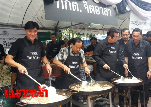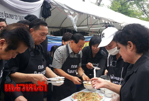 3 พ.ย.59 ผู้สื่อข่าวรายงานว่า เมื่อเวลา 10.30 น.ที่เต็นท์ "กกต.จิตอาสา" ฝั่งตรงข้ามพิพิธภัณฑสถานแห่งชาติ บริเวณรอบท้องสนามหลวง นายบุญส่ง น้อยโสภณ กรรมการการเลือกตั้ง (กกต.) ด้านกิจการสืบสวนสอบสวนและวินิจฉัย พร้อมด้วยผู้บริหารและพนักงานด้านกิจการสืบสวนสอบสวนและวินิจฉัย ร่วมแจกผัดไทย 1,500 ชุด และลองกอง 700 กิโลกรัม พุดดิ้ง 500 ชุด สาหร่าย 1,000 ซอง และน้ำเปล่า 4,000 ขวด สำหรับประชาชนที่มาร่วมถวายสักการะพระบรมศพ พระบาทสมเด็จพระปรมินทรมหาภูมิพลอดุลยเดช เบื้องหน้าพระบรมโกศ ณ พระที่นั่งดุสิตมหาปราสาท เพื่อถวายเป็นพระราชกุศล ทั้งนี้ ได้มีประชาชนมารอรับเป็นจำนวนมาก