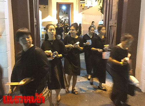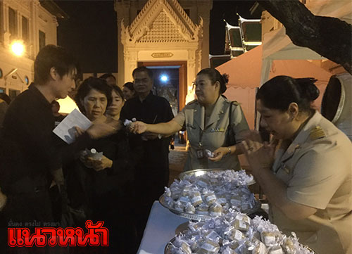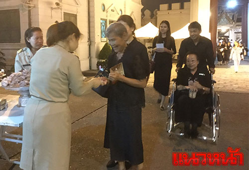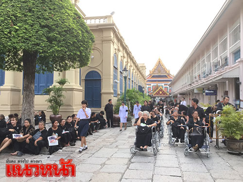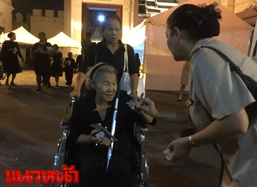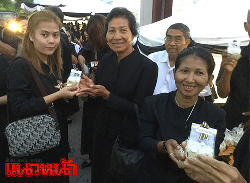 ขณะที่ น.ส.พุธิตา ภูถุ, น.ส.ภัณฑิรา วิประชุม, น.ส.ประพิตร สมีแจ้ง, น.ส.ผกามาศ ปรางค์ชัยภูมิ และ น.ส.สุนิสา รักชาติ ร่วมกันกล่าวว่า ตนและเพื่อนๆ ทั้ง 5 คน เมื่อวานนี้ (7 พ.ย) ได้ซื้อตั๋วเครื่องบินเดินทางมาจาก จ.อุดรธานี ตั้งใจมากราบสักการะพระบรมศพ และเดินทางมาถึงสนามหลวงตี 1 และสำนักพระราชวังเปิดให้เข้ากราบสักการช่วงตี 5 รู้สึกดีใจมากที่ได้เดินทางมาในวันนี้ ที่ผ่านมาถึงแม้พวกเราจะไม่เคยได้มีโอกาสเฝ้ารับเสด็จพระองค์ท่านเลย แต่ก็มีความเคารพรักพระองค์อย่างมาก เคยเห็นแต่ในทีวีพระองค์ทรงงานและเสด็จฯ เยี่ยมประชาชนในถิ่นทุรกันดาร และทรงเป็นแบบอย่างที่ดี วันนี้ไม่มีพระองค์ท่านแล้ว ก็จะนำสิ่งที่พระองค์สอนไว้มาเป็นแรงบันดาลใจในการใช้ชีวิตที่ดี และวันนี้พร้อมใจกันมากราบสักการะพระบรมศพพระองค์ท่านเป็นโอกาสสุดท้ายที่ได้ใกล้ชิด เพราะคงไม่มีวันนี้อีกแล้ว