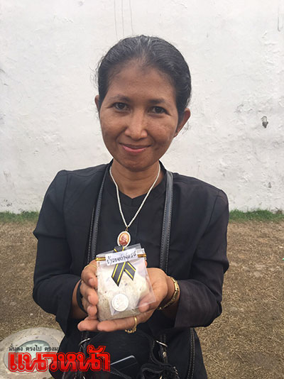 ขณะที่กลุ่ม "ลูกไทยรักแผ่นดิน" ประกอบด้วย น.ส.วิธรี รักษ์ประสูติ อายุ 63 ปี ข้าราชการครูบำนาญ จ.นนทบุรี, น.ส.พัชริน มลิดล อายุ 45 ปี, ร.ต.ชาญ ขำเมือง อายุ 69 ปี อดีตข้าราชการทหารศูนย์รักษาความปลอดภัย กองบัญชาการกองทัพไทย ได้นำข้าวสารบรรจุถุง เขียนข้อความ "ข้าวของพ่อ ร.๙" พร้อมเหรียญ 1 บาท ที่เก็บสะสมไว้เพื่อนำไปทำบุญ ได้นำมาติดไว้กับถุงข้าวด้วย