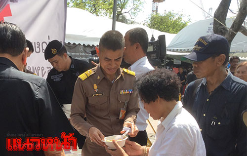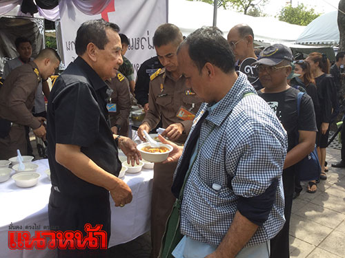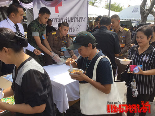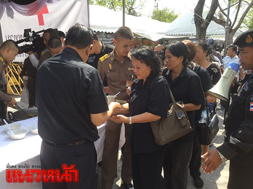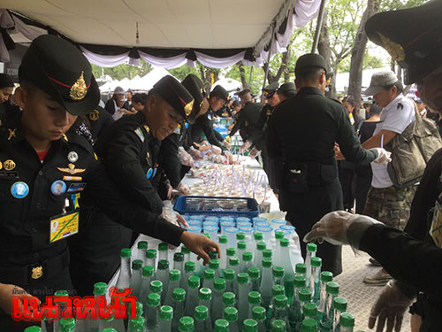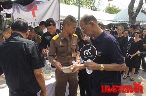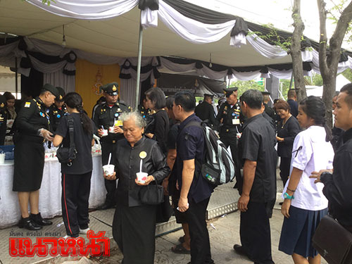 14 พ.ย.59 ผู้สื่อข่าวรายงาน ที่เต็นท์หน่วยทหารมหาดเล็กรักษาพระองค์ ในสมเด็จพระบรมโอรสาธิราชฯ สยามมกุฎราชกุมาร ซึ่งตั้งอยู่บริเวณท้องสนามหลวงฝั่งทิศใต้ ตรงข้ามประตูมณีนพรัตน์ พระบรมมหาราชวัง สมเด็จพระบรมโอรสาธิราชฯ สยามมกุฎราชกุมาร ทรงห่วงใยพสกนิกรที่เดินทางมาแสดงความอาลัย จึงทรงพระกรุณาโปรดเกล้าฯ ให้หน่วยทหารมหาดเล็กราชวัลลภรักษาพระองค์ ในสมเด็จพระบรมโอรสาธิราชฯ สยามมกุฎราชกุมาร นำอาหาร ขนม ผลไม้ ของว่าง และน้ำดื่มพระราชทานมาแจกจ่ายให้ประชาชน