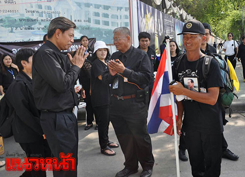 18 พ.ย.59 เมื่อเวลา 13.15 น. สิบตรีจาง แซ่เล่า อาสาสมัครคุมประพฤติจังหวัดเพชรบูรณ์ สาขาหล่มสัก ราษฎรชาวไทยภูเขา บ้านทับเก อำเภอหล่มเก่า จังหวัดเพชรบูรณ์ ซึ่งสำนึกในพระมหากรุณาธิคุณ พระบาทสมเด็จพระปรมินทรมหาภูมิพลอดุลยเดช ได้เดินเท้าจากจังหวัดเพชรบูรณ์ มุ่งสู่พระบรมมหาราชวังเพื่อถวายบังคมพระบรมศพ โดยมีนายมณฑล แก้วเก่า หัวหน้าผู้ตรวจราชการกรมคุมประพฤติ พร้อมด้วยผู้บริหารตลอดจนเจ้าหน้าที่กรมคุมประพฤติ ให้การต้อนรับและให้กำลังใจ บริเวณประตู 1 ฝั่งพระแม่ธรณี ศาลฎีกา (เดิม)