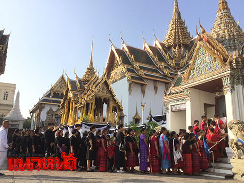 12 ธ.ค.59 ผู้สื่อข่าวรายงานว่า วันนี้ได้มีประชาชนจำนวนมากเดินทางมาเข้าคิวรอเพื่อกราบสักการะพระบรมศพพระบาทสมเด็จพระปรมินทรมหาภูมิพลอดุลยเดช ณ พระที่นั่งดุสิตมหาปราสาท ในพระบรมมหาราชวัง โดยเจ้าหน้าที่ได้เปิดให้ประชาชนที่นั่งรถวิลแชร์เข้ากราบสักการะพระบรมศพเป็นชุดแรก เวลา 04.45 ตามด้วยเป็นประชาชนทั่วไป เวลา 04.50 ทั้งนี้ สำนักพระราชวังได้แจกภาพพระบรมฉายาลักษณ์พระบาทสมเด็จพระปรมินทรมหาภูมิพลอดุลยเดช พิมพ์ 4 สี ขนาด 5 คูณ 7 นิ้ว ที่ทรงพระกรุณาโปรดเกล้าฯ พระราชทานแก่พสกนิกรเพื่อเก็บไว้เป็นที่ระลึก พร้อมข้าว "พอเพียง" ซึ่งเป็นข้าวพันธุ์ดีนำกลับไปเป็นขวัญข้าวด้วย