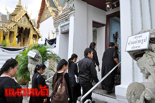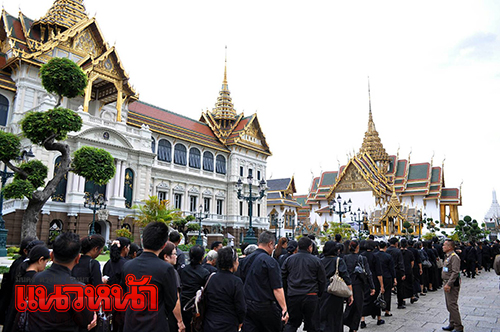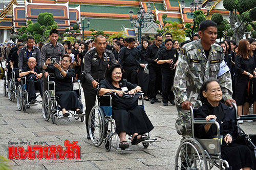 16 ธ.ค.59 ผู้สื่อข่าวรายงานว่า ในวันนี้เจ้าหน้าที่สำนักพระราชวัง ได้เปิดให้ประชาชนที่นั่งรถวิลแชร์เข้ากราบสักการะพระบรมศพเป็นชุดแรกใน เวลา 04.45 ตามด้วยประชาชนทั่วไป เวลา 04.50 ได้มีประชาชนจากทั่วทุกสารทิศของประเทศได้เดินทางมาเข้าคิวรอเพื่อกราบสักการะพระบรมศพพระบาทสมเด็จพระปรมินทรมหาภูมิพลอดุลยเดช บนพระที่นั่งดุสิตมหาปราสาท ในพระบรมมหาราชวัง กันอย่างเนืองแน่น โดยช่วงเช้าได้มีฝนโปรยปรายลงมา ประชาชนได้นำร่มที่เตรียมมากางกันฝนและยังคงพร้อมใจกันต่อแถวรอเข้ากราบสักการะพระบรมศพอย่างเป็นระเบียบโดยบริเวณด้านทิศตะวันออกของพระที่นั่งดุสิตมหาปราสาท เจ้าหน้าที่สำนักพระราชวังได้นำร่มขนาดใหญ่มากางให้บริการประชาชน