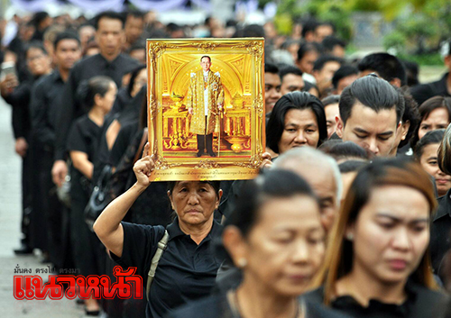 ด้าน นายดิเรก ไมทอง ข้าราชการครูบำนาญ อายุ 81 ปี เดินทางมากับเพื่อนบ้านจาก อ.ท่าชนะ จ.สุราษฎร์ธานี กว่า 100 คน แม้ต้องใช้เวลารอนานกว่า 5 ชม. เพื่อเข้ากราบสักการะพระบรมศพ เผยความรู้สึกทั้งน้ำตาคลอเบ้าว่า รู้สึกซาบซึ้งและตื้นตันใจมากจนน้ำตาไหลโดยไม่รู้ตัว พระองค์ทรงเป็นพ่อของคนไทยทั้งแผ่นดิน ตัวเองเป็นข้าราชการครูถือว่าเป็นข้ารองบาทโดยตรง ที่ผ่านมาได้ทำหน้าที่ของตัวเองโดยยึดพระราชดำรัสของพระองค์ที่เป็นข้าแผ่นดินต้องไม่ลืมหน้าที่ จำได้ว่าประมาณปี 2538 ได้เข้ามารับพระราชทานรางวัลข้าราชการอาวุโสดีเด่นในพระบรมมหาราชวัง รู้สึกภาคภูมิใจมาก หลังจากเกษียณออกมาแล้วก็ยังดำเนินชีวิตตามที่พระองค์ท่านสอน โดยยึดหลักการใช้ชีวิตเรียบง่าย มัธยัสถ์ มีเวลาว่างก็ปลูกพืชผักไว้กินเอง แล้วยังส่งต่อคำสอนถึงลูกหลานด้วย