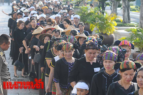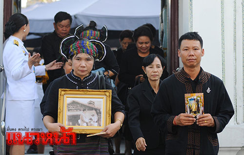 โดย นายชัยยะ คงชื่น อายุ 57 ปี ชาวไทใหญ่ อ.แม่อาย จ.เชียงใหม่ เดินทางมาพร้อมกับชนเผ่าไทใหญ่กว่า 400 คน จาก จ.เชียงใหม่ จ.เชียงราย และ จ.แม่ฮ่องสอน กล่าวว่า "ในหลวง ร.9 ท่านให้ชีวิตใหม่แก่พวกเราซึ่งอพยพมาจากประเทศเมียนมา นอกจากจะไม่เนรเทศพวกเราออกจากประเทศไทยแล้ว พระองค์ยังทรงพระเมตตาให้ที่ทำมาหากินด้วย และภายหลังจากที่พระองค์เสด็จฯมาเยี่ยมที่หมู่บ้านท่าตอนแล้วก็มีน้ำ มีไฟฟ้า มีถนนเข้าหมู่บ้าน และมีโรงเรียน ทำให้ลูกหลานของเราได้รับการศึกษาดีขึ้น รวมถึงมีโครงการหลวงหมอกสาม ขึ้นมาเพื่อส่งเสริมด้านเกษตรกรและรับซื้อผลผลิตทางการเกษตรของชาวบ้านให้มีรายได้ดีขึ้น ชาวไทใหญ่รู้สึกซาบซึ้งในพระมหากรุณาธิคุณ ถือว่าในหลวง ร.9 คือผู้มีพระคุณอย่างมาก ซึ่งช่วงเดือนกุมภาพันธ์ของทุกปี ชาวไทใหญ่จะจัดงานเพื่อแสดงความจงรักภักดีต่อพระองค์ท่าน"