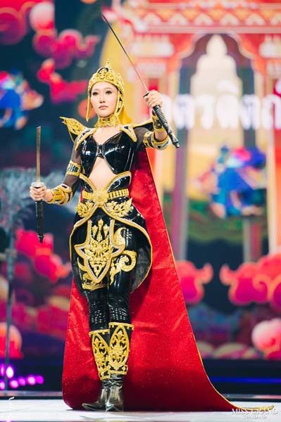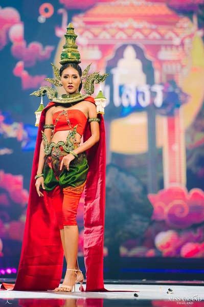แรงบันดาลใจมาจาก อาชีพการทำนาข้าวของชาวจังหวัดสุพรรณบุรี ซึ่งถือได้ว่าเป็นอู่ข้าวอู่น้ำ จึงได้รังสรรค์คชุดนี้ขึ้นมา เพื่อสะท้อนถึงอาชีพเกษตรกรรมในการทำนาข้าว โดยนำรวงข้าวมาทำเป็นแผงหลังทรงพุ่มหางนกยูง บ่งบอกถึงความอุดมสมบูรณ์ เป็นสัญลักษณ์ของความงดงาม ความพร้อม ความรัก ความสุข ความโชคดี และความเจริญในด้านการเงินของชาวสุพรรณบุรี