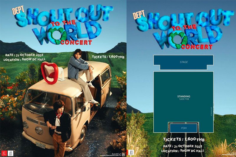 ร่วมเป็นส่วนหนึ่งในการเติบโตอีกหนึ่งขั้นของ Dept ผ่าน “BLEND 285 Signature present DEPT SHOUT OUT TO THE WORLD CONCERT” และป่าวประกาศให้โลกรู้ไปพร้อมกันว่า Dept กำลังจะมีคอนเสิร์ตใหญ่ในวันเสาร์ที่ 21 ตุลาคม 2566 ณ SHOW DC HALL ศูนย์การค้า SHOW DCภายในงานมีเพียงบัตรยืนราคาเดียว 1,600 บาท (ราคาบัตรยังไม่รวมค่าธรรมเนียมออกบัตรค่าบริการ และค่าธรรมเนียมชำระเงิน) จำหน่ายบัตรแล้วตั้งแต่วันนี้จนกว่าบัตรจะหมด ที่ https://www.theconcert.com/concerts/deptshoutouttotheworldและแอปพลิเคชั่นThe Concert โดยสามารถติดตามความเคลื่อนไหวหรือรายละเอียดเพิ่มเติมได้ทางโซเชียลมิเดียของ Dept และค่าย Smallroom