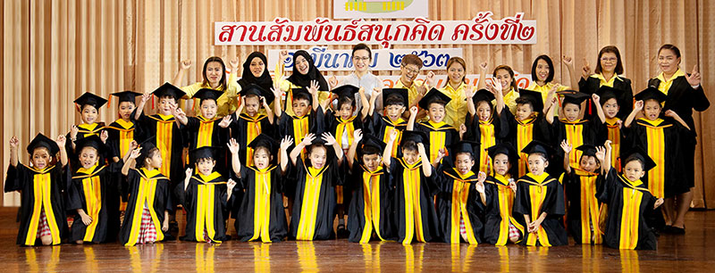 วันเวลาผ่านไปอย่างรวดเร็ว เด็กๆ ได้เรียนรู้อย่างสนุกและมีความสุขทุกๆ วัน จนจบภาคการศึกษา บ้านสนุกคิดจึงจัดเวทีให้เด็กๆ ได้แสดงความสามารถด้วยรูปแบบการแสดงที่หลากหลาย มีทั้งการแสดงละคร การร้องเพลงการเต้นประกอบเพลง การแสดงบัลเลต์เทควันโด พร้อมกับร่วมยินดีกับพี่ๆ อนุบาล 3 ที่สำเร็จการศึกษาระดับปฐมวัยพร้อมจะก้าวสู่โลกใบใหม่...งานนี้เด็กๆ ได้มอบความสุขให้ผู้ใหญ่ คุณพ่อ-คุณแม่มาร่วมเชียร์ลูกๆ หลานๆด้วยใบหน้าเปื้อนยิ้มกันถ้วนหน้า