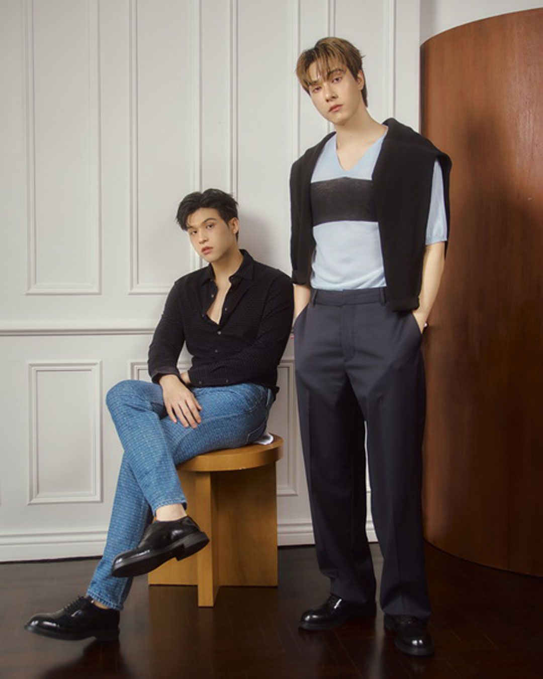 เริ่มต้นด้วยลุคแรก สกายและนานิเลือกสวมแจ็กเก็ตโทนสีอ่อนพอดีตัวและเบลเซอร์ทรงโอเวอร์ไซส์ จับคู่กับกางเกงทรงตรงที่เข้ากันอย่างลงตัว ถัดมาคือลุคที่สอง ซึ่งนำเสนอเสื้อบลูซงเอวจั๊มและเบลเซอร์จับคู่กับกางเกงสีดำ ให้ลุคที่ดูเรียบโก้แต่ยังคงแฝงเสน่ห์อ่อนโยนด้วยเสื้อตัวในโทนสีอ่อน และปิดท้ายด้วยลุคสุดคลาสสิก—สกาย ในเชิ้ตสีดำคู่กับกางเกงยีนส์พิมพ์ลายโลโก้ all-over ขณะที่ นานิ เลือกสวมเสื้อคอวี พร้อมเพิ่มเลเยอร์ด้วยสเวตเตอร์พาดไหล่
