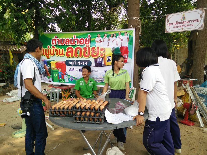 ชาวบ้านที่นำขยะมาแลกไข่ กล่าวว่า เป็นโครงการที่ดี นำมาแลกไข่ไปกับข้าวประกอบอาหารได้ ส่วนใหญ่ที่เอานำมาแลกจะเป็นประเภทขวด ที่อันตรายและทำลายสิ่งแวดล้อม นำเก็บๆรวมๆสะสมไว้แล้วนำมาแลกเป็นอาหารการกิน ได้นำสิ่งที่เป็นขยะมูลฝอยมากำจัด เพื่อช่วยให้สภาพแวดล้อมดีขึ้น