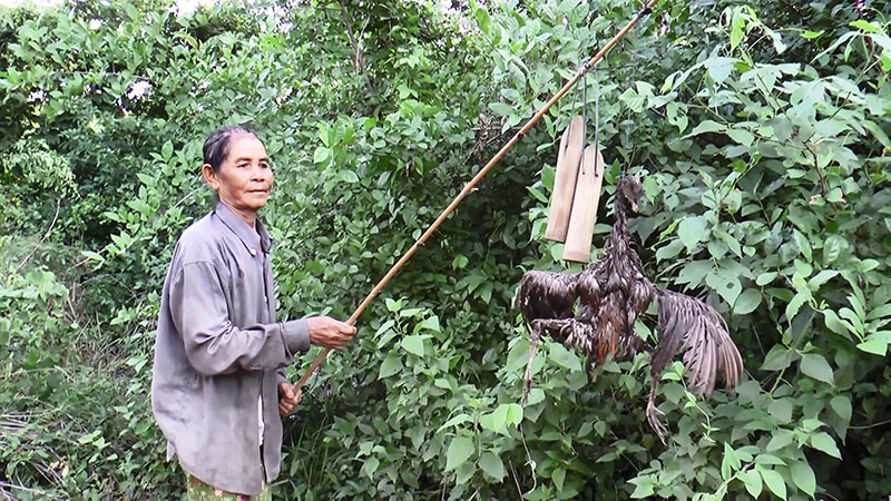 อย่างไรก็ตาม จากการสำรวจรอบบริเวณศาลาดังกล่าว ก็พบซากไก่ตายในลักษณะถูกใช้ไม้เสียบกางปีกและขาทั้งสองข้างออกคล้ายกับตรึงกางเขน มีกระบอกไม้ไผ่แขวนติดไว้ใกล้กับซากไก่ 2 บอก มัดติดไว้กับกิ่งไม้ไผ่ ยาวประมาณ 2 เมตร พิงไว้กับพุ่มไม้ข้างศาลาริมทางดังกล่าว