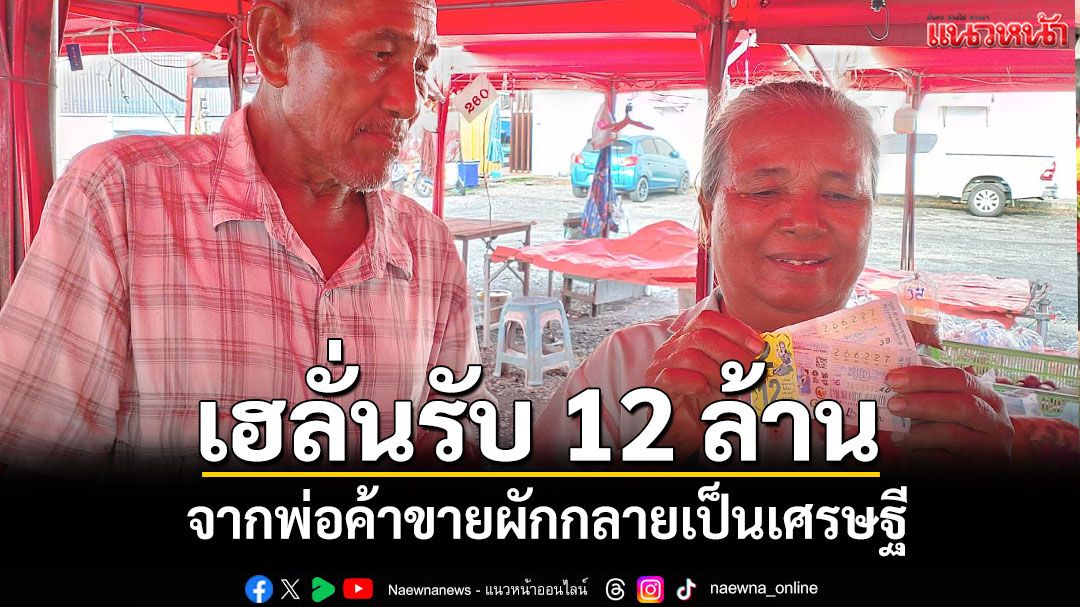 สองตายายขายผักเฮลั่นตลาดนัดเสาสูงบ่อวินถูกรางวัลที่ 1 รับ 12 ล้านกลายเป็นเศรษฐี