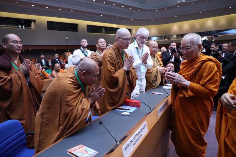 “ในนามของคณะสงฆ์ไทย ขอต้อนรับท่านพระเถรานุเถระ ตลอดจนพุทธศาสนิกชนนานาชาติ ที่มาร่วมการประชุมชาวพุทธนานาชาติ เนื่องในเทศกาลวิสาขบูชา วันสำคัญสากลของโลก ประจำพุทธศักราช ๒๕๖๒ ในวันนี้ ด้วยความปรารถนาดีอย่างยิ่ง