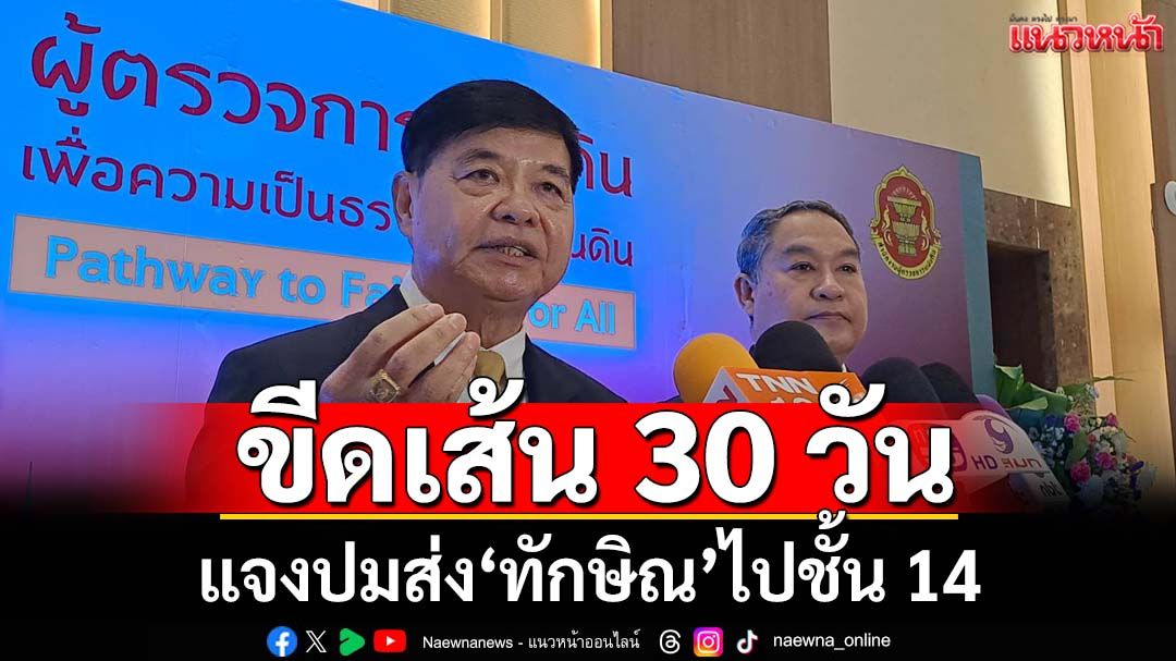 ‘ผู้ตรวจการแผ่นดิน’ขีดเส้น 30 วัน ให้หน่วยงานที่เกี่ยวข้องแจงปมส่งตัว‘ทักษิณ’รักษาชั้น 14 รพ.ตำรวจ ไม่หนักใจเชื่อทุกหน่วยงานให้ความร่วมมือ ยืนยันใช้เวลาไม่นาน
