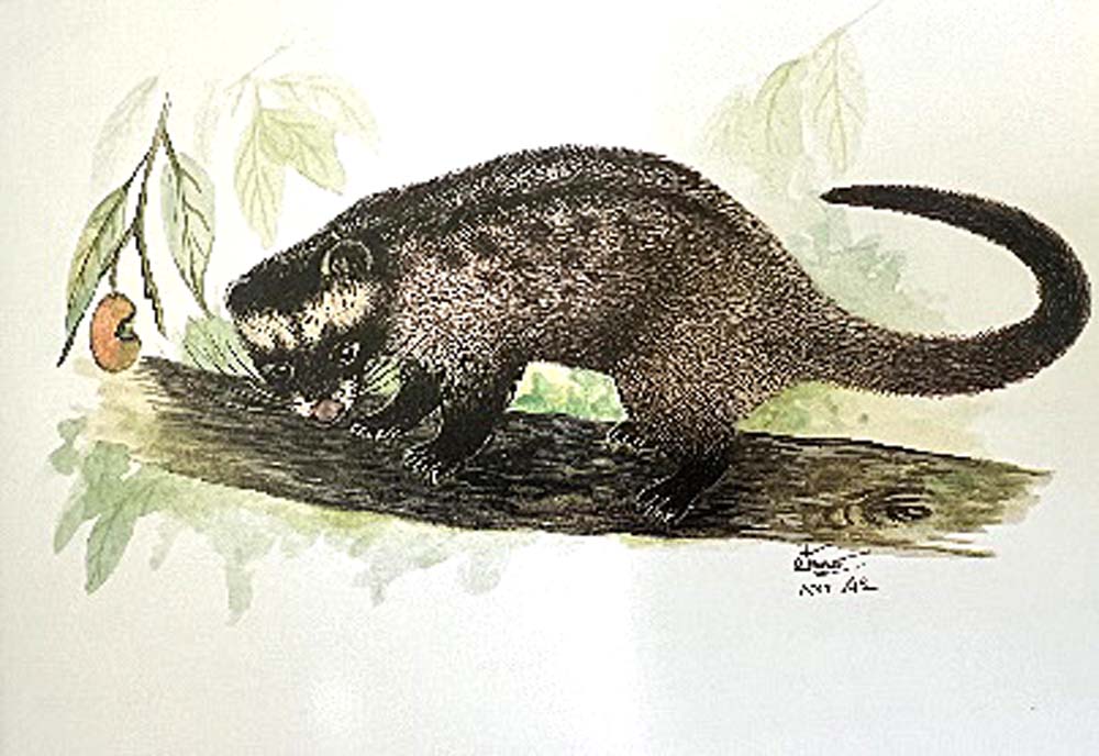 4.อีเห็นหน้าขาว มีชื่อวิทยาศาสตร์ว่า Arctogalidia trivirgata เป็นสัตว์จำพวกชะมดและอีเห็น แต่มีขนาดเล็กกว่าความยาวลำตัวและหัว 50-76 เซนติเมตร หางยาว 50-64 เซนติเมตร น้ำหนัก 3-5 กิโลกรัม มีสีขนที่แตกต่างหลากหลายออกไป ในบางตัวอาจมีสีน้ำตาลแดง บางตัวเป็นสีน้ำตาลดำ ไม่มีจุดหรือลายตามลำตัว รอบๆขอบตามีสีเข้ม บริเวณแก้มและหน้าผากสีขาวนวลคล้ายใส่หน้ากาก หลังหูและหลังคอมีสีเข้ม หางยาว มีต่อมกลิ่นที่โคนหาง ตัวผู้มีขนาดใหญ่กว่าตัวเมียเล็กน้อย พบได้