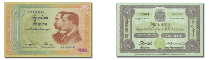 2.ธนบัตรที่ระลึกเนื่องในโอกาสครบรอบ 100 ปี ธนบัตรไทย (ปี 2545) ชนิดราคา 100 บาท จำนวน 9 แสนฉบับ