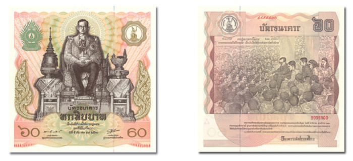 1.บัตรธนาคารเนื่องในมหามงคลสมัยที่พระบาทสมเด็จพระเจ้าอยู่หัว ทรงเจริญพระชนมพรรษาหกสิบบริบูรณ์ 5 ธันวาคม 2530 ชนิดราคา 60 บาท จำนวน 9 แสนฉบับ