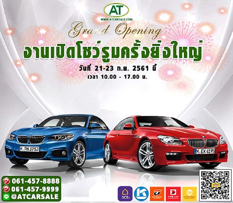 “การก่อสร้าง และขยายอาณาจักรศูนย์รวมบริการซื้อขายรถมือสองคุณภาพระดับชั้นนำของประเทศขึ้นภายใต้ชื่อ เอ.ที.คาร์เซลส์ ปัจจุบันก่อสร้างเสร็จแล้ว เราจึงถือโอกาสจัดงาน GRAND OPENING โดยเปิดตัวอย่างเป็นทางการตั้งแต่วันที่ 21-23 กันยายน 2561 โดยเราจึงอยากเชิญชวนลูกค้า และประชาชนทั่วไปแวะมาชมโชว์รูมของเราเพื่อรับบริการที่ดีจากเราครับ” นายพิสิฐศักดิ์ กล่าว