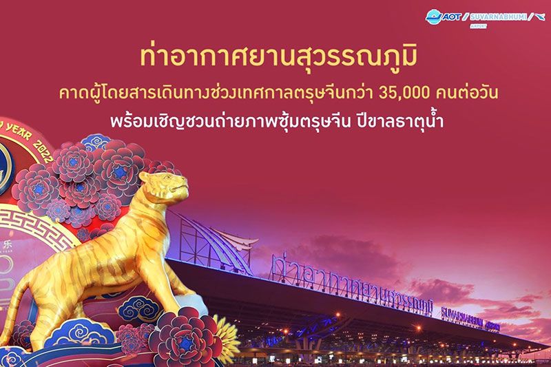 ท่าอากาศยานสุวรรณภูมิคาดช่วงเทศกาลตรุษจีน ผู้โดยสารเพิ่มขึ้นจากปีที่แล้ว พร้อมเชิญชวนถ่ายภาพรับเทศกาลตรุษจีน ปีขาล ธาตุน้ำ