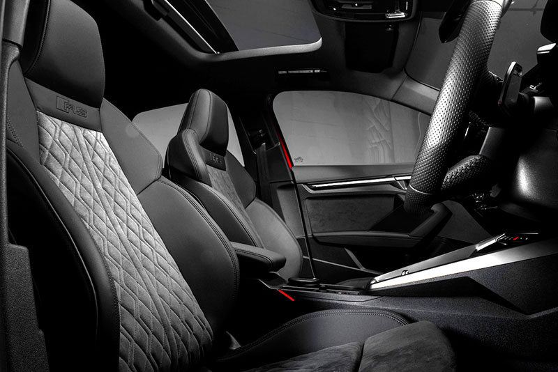 The New Audi RS3 Sportback มาพร้อมกับระบบเบรก 6 พอต แบบเจาะรูระบายอากาศออกแบบมาใหม่ให้ใหญ่ขึ้น และเบรกได้อย่างมั่นใจ เพื่อให้สามารถควบคุมพละกำลังมหาศาลจากเครื่องยนต์ 5 สูบได้ และระบบควบคุมอากาศที่ทำให้เบรกเย็นลงเร็วขึ้นกว่าเดิม 20% ซึ่งจะทำให้เบรกไม่ร้อนจนเกินไป นอกจากนี้ยังสามารถลดการเสื่อมสภาพของผ้าเบรกให้ช้าลงเรียกได้ว่าเป็น Hatchback สมรรถนะซูเปอร์คาร์ที่สามารถใช้งานได้ทุกวัน