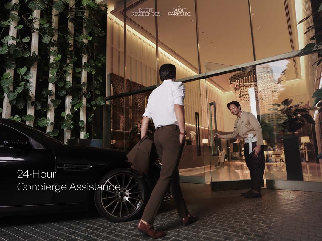 และยังสามารถเรียกใช้บริการเพิ่มเติมแบบ On-demand ที่เป็นไปตามมาตรฐานชั้นสูงของโรงแรมดุสิตธานีอีกหลากหลายบริการ อาทิ บริการซ่อมบำรุง บริการตัดเย็บ บริการจัดดอกไม้ บริการ Room Service บริการ In-residence Dining บริการเชฟส่วนตัว บริการ Catering หรือบริการ Event Planning สำหรับงานเลี้ยงสังสรรค์บริการพี่เลี้ยงเด็ก บริการดูแลผู้สูงอายุ เป็นต้น ซึ่งบริการต่าง ๆ จะมาพร้อมด้วยมาตรการความปลอดภัยเพื่อสร้างความอุ่นใจให้ลูกบ้านด้วย Command Center รูปแบบการรักษาความปลอดภัยและความเป็นส่วนตัวของผู้พักอาศัยแบบ Integrated Solution การทำงานควบคู่ระหว่างระบบ CCTV และพนักงานรักษาความปลอดภัย ตั้งแต่ประตูเข้าสู่โครงการ รวมถึงเจ้าหน้าที่เทคนิค ซึ่งคอยดูแลผู้พักอาศัยตลอด 24 ชั่วโมง พร้อมเอกสิทธิ์พิเศษ กับ Dusit Elite Program อาทิ สิทธิประโยชน์อาหารและเครื่องดื่มห้องอาหาร ที่พักในเครือดุสิตธานีที่สามารถใช้ได้ทั่วโลก พร้อมบริการพิเศษ อาทิ บริการรับ-ส่งแบบส่วนตัวจากสนามบินสู่ที่พักด้วยรถหรู ขยายเวลาเช็กเอาท์ คลับเลาจน์ และต้อนรับสัตว์เลี้ยงในการเข้าใช้บริการโรงแรม Pet-Friendly ของเครือดุสิตธานี เป็นต้น