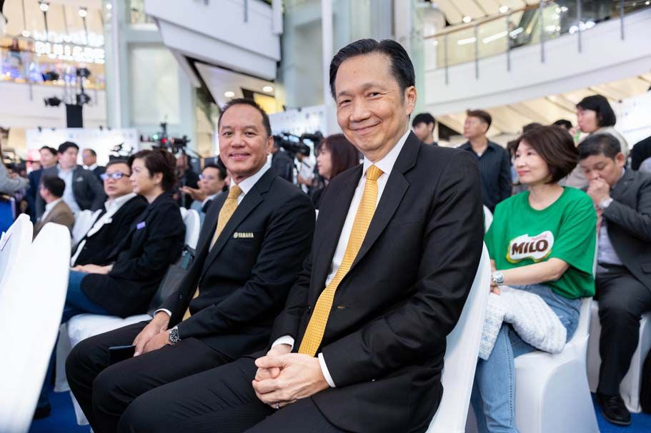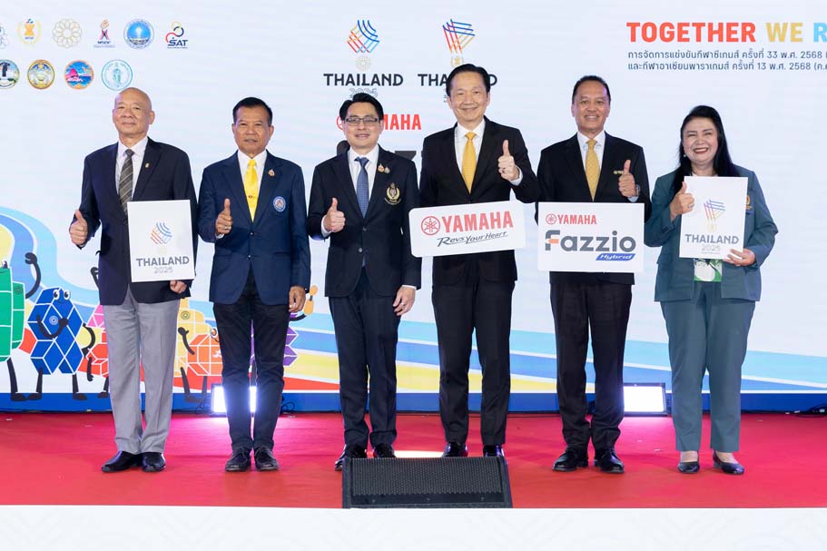 นายพงศธร เอื้อมงคลชัย ประธานกรรมการบริหาร นายภาณุพล กิตติคำรณ ผู้จัดการใหญ่ด้านการค้า นายอุกฤษณ์ ภาควิวรรธ รองผู้จัดการใหญ่ด้านวางแผนการค้า และการตลาด บริษัท ไทยยามาฮ่ามอเตอร์ จำกัด ถ่ายภาพร่วมกับ ดร.ก้องศักด ยอดมณี ผู้ว่าการการกีฬาแห่งประเทศไทย ในงานแถลงข่าว เปิดตัวผู้สนับสนุนหลักอย่างเป็นทางการ กีฬาซีเกมส์ ครั้งที่ 33 และอาเซียนพาราเกมส์ ครั้งที่ 13 ณ ลานเซ็นทรัลคอร์ท ชั้น 1 ศูนย์การค้าเซ็นทรัลเวิลด์ ราชประสงค์ เมื่อเร็วๆ นี้
