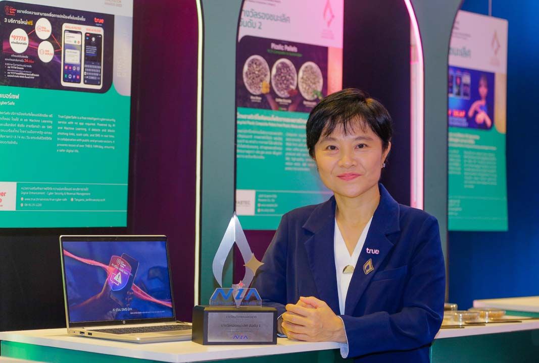 ดร.เนตรชนก วิภาตะศิลปิน หัวหน้าสายงานด้านความยั่งยืนองค์กร บมจ. ทรู คอร์ปอเรชั่น กล่าวเสริมว่า “ทรู มุ่งมั่นนำนวัตกรรมมาสร้างคุณค่าให้สังคมอย่างยั่งยืน และ True CyberSafe คือหนึ่งในผลงานที่เชื่อมโยงเทคโนโลยีกับความรับผิดชอบต่อสังคมได้อย่างชัดเจน การได้รับรางวัลครั้งนี้ จึงเป็นแรงผลักดันให้เราสร้างสรรค์นวัตกรรมต่อไป ทั้งการพัฒนานวัตกรรุ่นใหม่ สิทธิบัตรผลงานใหม่ๆ และโซลูชันดิจิทัลที่ทำให้ผู้คนใช้ชีวิตออนไลน์ได้อย่างมั่นใจและปลอดภัย โดยปัจจุบัน มีพนักงานกว่า 1,040 คน ร่วมคิดค้นและพัฒนาเทคโนโลยีอย่างต่อเนื่องเพื่อยกระดับประสบการณ์ลูกค้า พร้อมจดสิทธิบัตรและอนุสิทธิบัตรแล้วกว่า 116 ผลงาน และภายในปี 2030 ทรูตั้งเป้าจะสร้างนวัตกรเพิ่มอีก 500 คน ผลักดันให้มีสัดส่วนรายได้จากนวัตกรรมไม่ต่ำกว่า 15% และจดทะเบียนทรัพย์สินทางปัญญาได้ถึง 200 ผลงาน ตอกย้ำความมุ่งมั่นของทรูในการพัฒนาอย่างต่อเนื่องเพื่อสังคมที่ยั่งยืน”