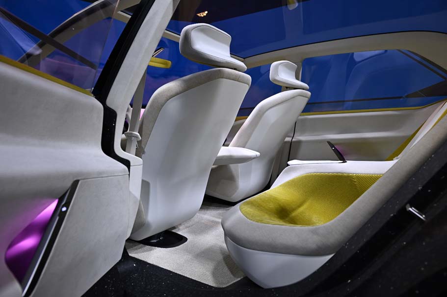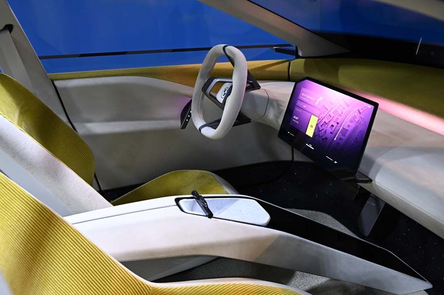 ห้องโดยสารของบีเอ็มดับเบิลยู Vision Neue Klasse ให้บรรยากาศที่เปิดกว้าง สว่าง พร้อมต้อนรับทั้งผู้ขับขี่และผู้โดยสารทุกคน ด้วยพื้นผิวที่สะอาดตาในทุกองค์ประกอบ ปราศจากการตกแต่งด้วยโครเมียมหรือหนัง ทั้งช่วยลดผลกระทบต่อสิ่งแวดล้อมและสร้างรูปโฉมที่ล้ำสมัยเหนือกาลเวลาไปพร้อมกัน แผงคอนโซลหน้ามาในโทนสีสว่างเข้ากันกับพวงมาลัยทรงตัดขอบบน-ล่างและจอแสดงผล Central Display แบบ OLED ที่ติดตั้งอยู่ตรงกลางได้เป็นอย่างดี ทั้งยังกลมกลืนไปกับดีไซน์ของคันเกียร์และจุดชาร์จสมาร์ทโฟนแบบไร้สาย