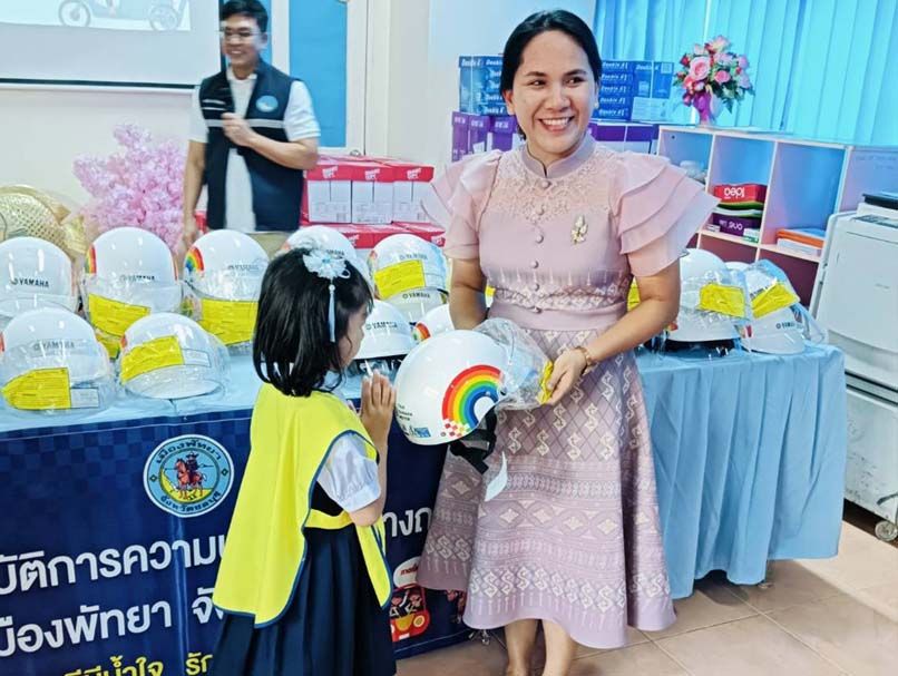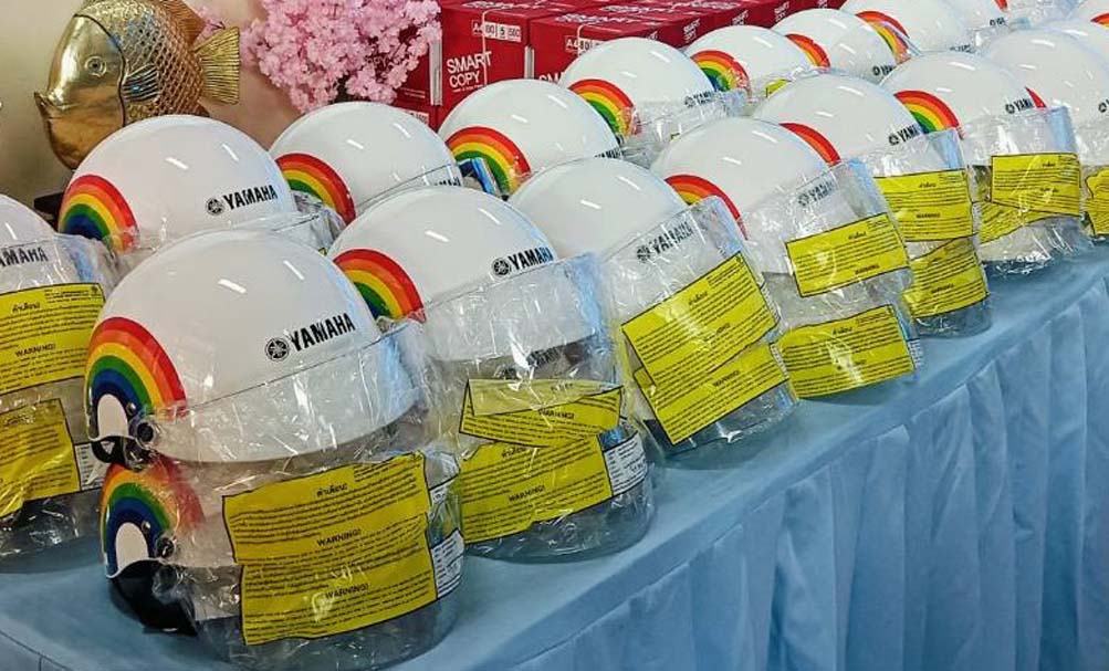 โดยมอบให้กับกรมส่งเสริมการปกครองท้องถิ่น ในการจัดกิจกรรม ส่งเสริมสร้างวัฒนธรรมความปลอดภัยในการสวมหมวกนิรภัย 100% ซึ่งได้นำไปมอบส่งต่อให้กับเด็กและเยาวชน ที่ผู้ปกครองใช้รถจักรยานยนต์ในการรับส่ง บุตร หลาน ที่ศูนย์พัฒนาเด็กเล็ก ที่ขาดแคลน และไม่มีหมวกนิรภัยให้กับบุตรหลาน