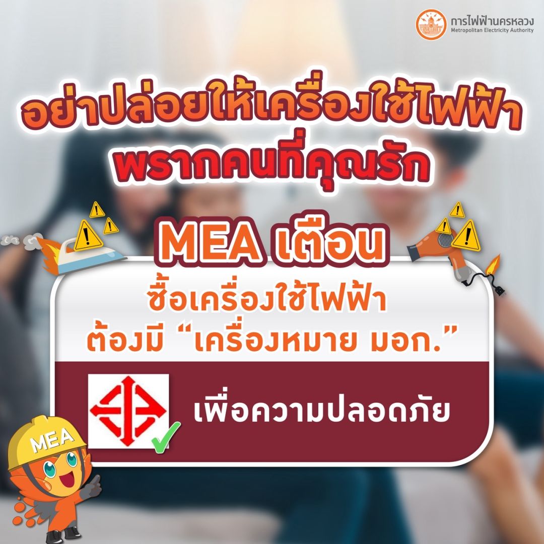 อย่าปล่อยให้เครื่องใช้ไฟฟ้า พรากคนที่คุณรัก MEA เตือน ซื้อเครื่องใช้ไฟฟ้า ต้องมี “เครื่องหมาย มอก.” เพื่อความปลอดภัย