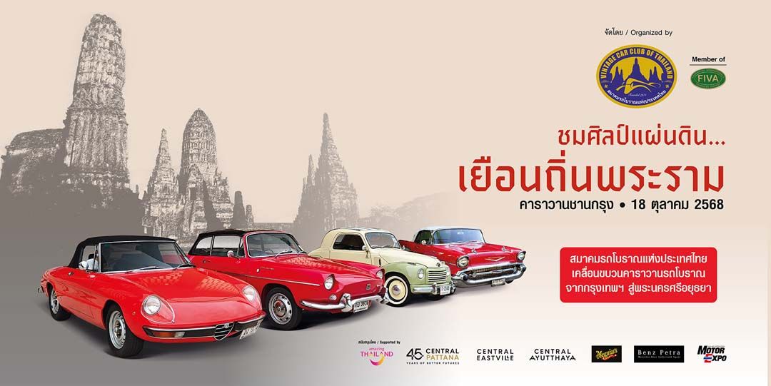 สมาคมรถโบราณแห่งประเทศไทย ร่วมกับ เซ็นทรัลพัฒนา จัดกิจกรรมท่องเที่ยวด้วยรถโบราณ และรถคลาสสิค เยือนถิ่นศิลปวัฒนธรรมไทย บนเส้นทางกรุงเทพฯ-พระนครศรีอยุธยา เมื่อวันที่ 18 ตุลาคม ที่ผ่านมา