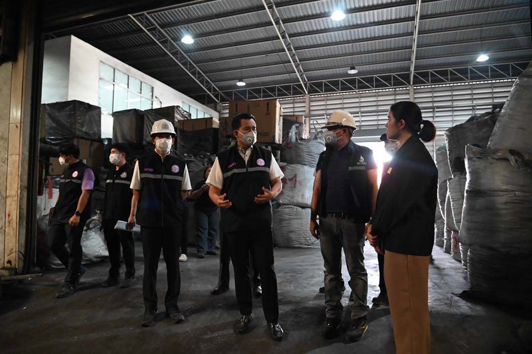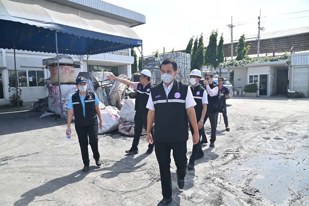 ต่อมาเวลา 10.00 น.เลขานุการรัฐมนตรีว่าการกระทรวงอุตสาหกรรม ได้นำชุดเต็มเหนี่ยวพร้อมเจ้าหน้าที่ฯ ลงพื้นที่ตรวจสอบ บริษัท ถุงทองโลหะ อินเตอร์ จำกัด ตั้งอยู่หมู่ที่ 8 ตำบลศีรษะจรเข้ใหญ่ อำเภอบางเสาธง จังหวัดสมุทรปราการ ซึ่งประกอบกิจการถอดแยกและบดย่อยชิ้นส่วนอุปกรณ์ไฟฟ้าและอิเล็กทรอนิกส์ บดย่อยเศษคัดแยกวัสดุสายไฟที่ไม่เป็นของเสียอันตราย และหลอมหล่อเศษและตะกรันโลหะ เก็บรวบรวมแบตเตอรี่โดยไม่แปรสภาพ จากการตรวจสอบ พบสิ่งที่ไม่ได้เป็นไปตามที่ได้รับอนุญาตตามทะเบียนโรงงาน ไม่ว่าจะเป็น กระบวนการผลิตซิลิคอนโดยไม่ได้รับอนุญาต ไม่มีการตรวจวัดคุณภาพปล่องระบาย พบกองวัตถุและผลิตภัณฑ์นอกอาคารโรงงาน และอยู่ในระหว่างการตรวจวัดดินและน้ำใต้ดิน