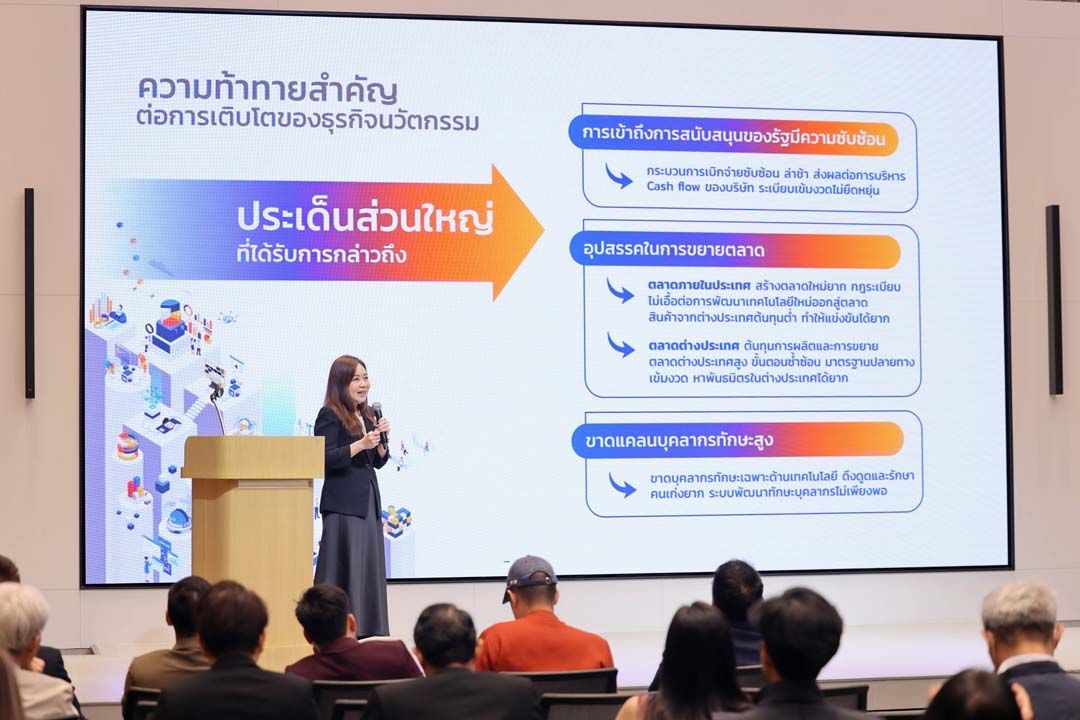 สำหรับสตาร์ทอัพไทย พบว่า ส่วนใหญ่ยังมีการกระจุกตัวอยู่ในระยะเริ่มต้น มีอายุกิจการเฉลี่ยไม่เกิน 10 ปี และอยู่ในอุตสาหกรรมดิจิทัลเป็นส่วนใหญ่ ขณะเดียวกัน ยังระบุถึงความท้าทายสำคัญที่กระทบต่อการเติบโตของธุรกิจนวัตกรรม ได้แก่ 1) การเข้าถึงการสนับสนุนจากภาครัฐที่ยังมีความซับซ้อน 2) ข้อจำกัดในการขยายตลาดทั้งในและต่างประเทศ และ 3) การขาดแคลนบุคลากรทักษะสูงด้านเทคโนโลยีและนวัตกรรม ซึ่งต้องการกลไกบูรณาการระหว่างภาครัฐ เอกชน และสถาบันการศึกษา