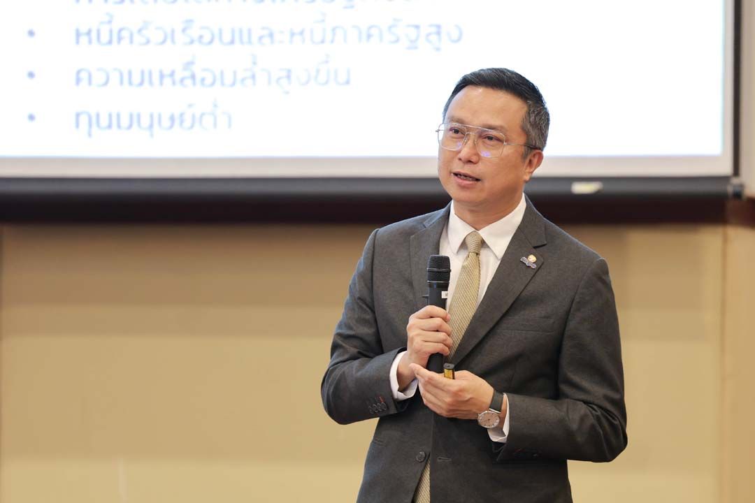 ดร.สุรชัย ได้สะท้อนให้เห็นความท้าทายในการพัฒนาเศรษฐกิจไทย โดยแบ่งออกเป็น 4 ประเด็น ได้แก่ 1. การค้าระหว่างประเทศ จากการเปลี่ยนแปลงทางด้านภูมิรัฐศาสตร์ (Geopolitics) จึงต้องให้ความสำคัญกับการเคลื่อนไหวของแต่ละประเทศ ทั้งกลุ่มประเทศมหาอำนาจ และประเทศในกลุ่มอาเซียนด้วย ประเด็นต่อมาคือเรื่องห่วงโซ่มูลค่าโลก (Global Value Chain) ที่หลังจากเกิดสถานการณ์โควิดส่งผลให้ห่วงโซ่อุปทานเปลี่ยนไป และอีกประเด็นที่สำคัญคือ กฎระเบียบทางการค้า อาทิ EU Green Deal ซึ่งเป็นนโยบายของสหภาพยุโรปในการมุ่งสู่เป้าหมายความเป็นกลางทางคาร์บอน กลไกการปรับคาร์บอนก่อนข้ามพรมแดน หรือ CBAM (Carbon Border Adjustment Mechanism) มาตรการกำหนดราคาสินค้านำเข้าของสหภาพยุโรป หรือการประกาศใช้กฎหมายว่าด้วยสินค้าที่ปลอดจากการตัดไม้ทำลายป่า (EU Regulation on Deforestation-free products: EUDR) ของสหภาพยุโรป ฯลฯ จากประเด็นเหล่านี้ หากไทยไม่ปรับตัวก็จะขายสินค้าไม่ได้และส่งผลกระทบต่อเศรษฐกิจตามมา
