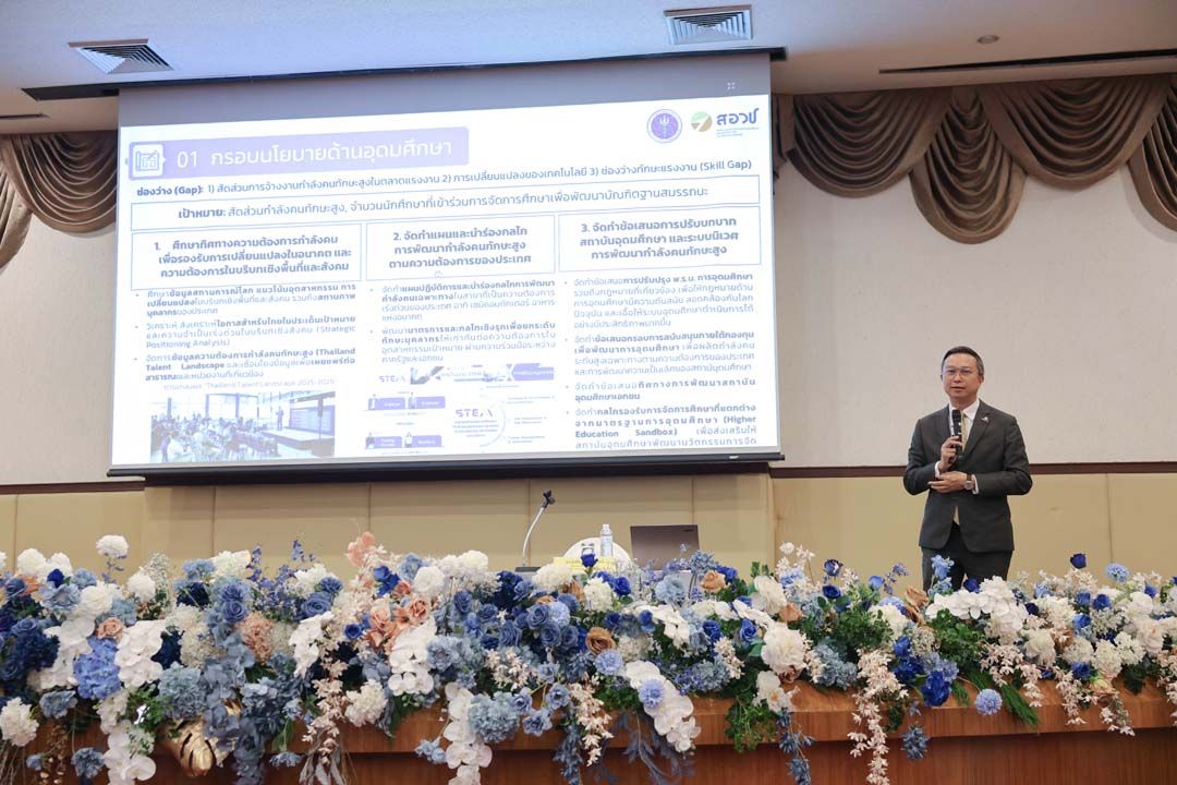 3. ตัวอย่างกรอบการพัฒนาอุตสาหกรรม: เซมิคอนดักเตอร์และอิเล็กทรอนิกส์ขั้นสูง พัฒนาอุตสาหกรรม Semiconductor และอิเล็กทรอนิกส์ขั้นสูง เพื่อก้าวสู่การเป็นผู้นำการผลิตในเอเชียตะวันออกเฉียงใต้ 4. การยกระดับ SMEs สู่ผู้ประกอบการธุรกิจฐานนวัตกรรม หรือ IDEs (Innovative Driven Enterprises) สนับสนุน SMEs เพิ่มการเข้าถึงเทคโนโลยี ยกระดับผลิตภาพการผลิต เพิ่มคุณภาพและต่อยอดนวัตกรรม และ 5. การพัฒนาเชิงพื้นที่และลดความเหลื่อมล้ำ มีเป้าหมายในการยกระดับมหาวิทยาลัยเป็นศูนย์กลางพัฒนาสังคมและเศรษฐกิจพื้นที่ ลดความเหลื่อมล้ำเชิงพื้นที่ สร้างโอกาสที่เป็นธรรม และเพิ่มการจ้างงานคุณภาพและเศรษฐกิจฐานความรู้ในภูมิภาค