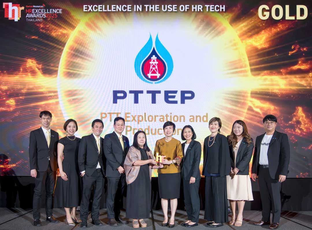 บริษัท ปตท.สำรวจและผลิตปิโตรเลียม จำกัด (มหาชน) หรือ ปตท.สผ. โดยนางสุจินดา พลอยมนตรี (ที่ 5 จากขวา) ผู้ช่วยกรรมการผู้จัดการใหญ่ สายงานทรัพยากรบุคคล รับมอบรางวัลชนะเลิศ (Gold) สาขา Excellence in the Use of HR Tech ในงาน HR Excellence Awards Thailand 2025 จากนางวัลลภา แตงโสภา (ที่ 5 จากซ้าย) กรรมการในการตัดสินรางวัล โดย ปตท.สผ. ได้รับรางวัลดังกล่าวจากโครงการ HR Hyperspace ซึ่งสะท้อนถึงความมุ่งมั่นของบริษัทในการพัฒนาและยกระดับการบริหารงานทรัพยากรบุคคลผ่านการนำเทคโนโลยีดิจิทัลมาปรับเปลี่ยนกระบวนการและเพิ่มประสิทธิภาพการทำงาน สร้างคุณค่าที่ยั่งยืนให้แก่องค์กร พิธีมอบรางวัลจัดขึ้น ณ โรงแรมแบงค็อกแมริออท เดอะ สุรวงศ์ กรุงเทพฯ