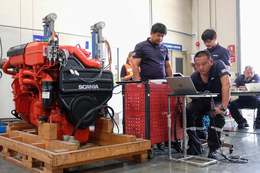 ดังนั้นความรู้ความสามารถของทีมช่างสแกนเนีย จึงเป็นเรื่องสำคัญที่ต้องมีการฝึกอบรม เรียนรู้เรื่องนวัตกรรมเทคโนโลยี ทักษะในการวิเคราะห์ปัญหา การดูแลรักษาและซ่อมบำรุงอยู่ตลอดเวลา โดยบริษัทแม่ที่สวีเดนได้ให้การสนับสนุนเป็นอย่างดี ภายใต้มาตรฐานเดียวกันทั่วโลก โปรแกรมการฝึกอบรมช่างดังกล่าวเรียกว่า สแกนเนีย กริฟฟิน ซึ่งมีด้วยกัน 3 ระดับ โดยผู้เข้าอบรมจะต้องผ่านการฝึกทั้งภาคทฤษฎี ภาคปฏิบัติและการทดสอบก่อนจะได้รับการรับรองว่าผ่านการอบรมในระดับต่างๆ ส่วนความรู้ในการอบรมมีตั้งแต่ความรู้พื้นฐานในการซ่อมบำรุง การใช้เครื่องมือทั่วไปและเฉพาะทางที่ถูกต้องในการ ถอด ประกอบ ชิ้นส่วนที่เป็นไปตามขั้นตอนของคู่มือ สแกนเนีย อย่างถูกต้อง เพื่อป้องกันความเสียหาย การใช้เครื่องมือตรวจสอบ วิเคราะห์ วางแผนและการแก้ปัญหา การอัพเดตความรู้ในเรื่องนวัตกรรมและเทคโนโลยีใหม่ เช่น เครื่องยนต์ Scania Euro5 ระบบเกียร์ หรือ ระบบอื่นๆ รวมถึงอธิบายสื่อสารกับลูกค้าในการรักษาและซ่อมบำรุง ฯลฯ