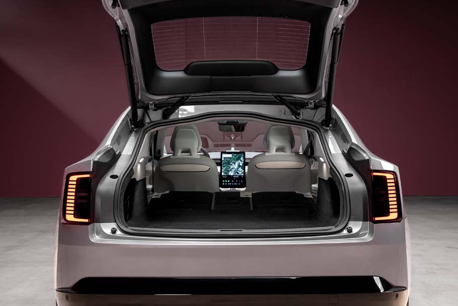 ดีไซน์ภายนอกสะท้อนความทันสมัย และความโดดเด่นอย่างชัดเจน ด้วยความสูงใต้ท้องรถที่ช่วยเพิ่มทั้งสมรรถนะและทัศนวิสัยในการขับขี่ เส้นหลังคาลาดท้ายในสไตล์ Fastback ผสานความสง่างามและความสปอร์ตไว้อย่างลงตัว ไฟหน้า Thor’s Hammer เอกลักษณ์เฉพาะของวอลโว่ จับคู่กับไฟท้าย LED ทรงตัว C ที่เรียงรับกับแนวหลังคา พร้อมแอนิเมชั่นไฟต้อนรับ และอำลาในแบบฉบับของแบรนด์ ด้านท้ายรถออกแบบให้โฉบเฉี่ยว แต่ยังคงความอเนกประสงค์ ด้วยพื้นที่เก็บสัมภาระด้านหลังขนาด 446 ลิตร และ ขยายได้ถึง 904 ลิตร เมื่อพับเบาะแถวสองแบบแยกอิสระ (40/20/40) รวมถึง ช่องเก็บของด้านหน้ารถ FRUNK ขนาด 27 ลิตร เหมาะสำหรับจัดเก็บสายชาร์จหรือของใช้ขนาดเล็กอย่างลงตัว