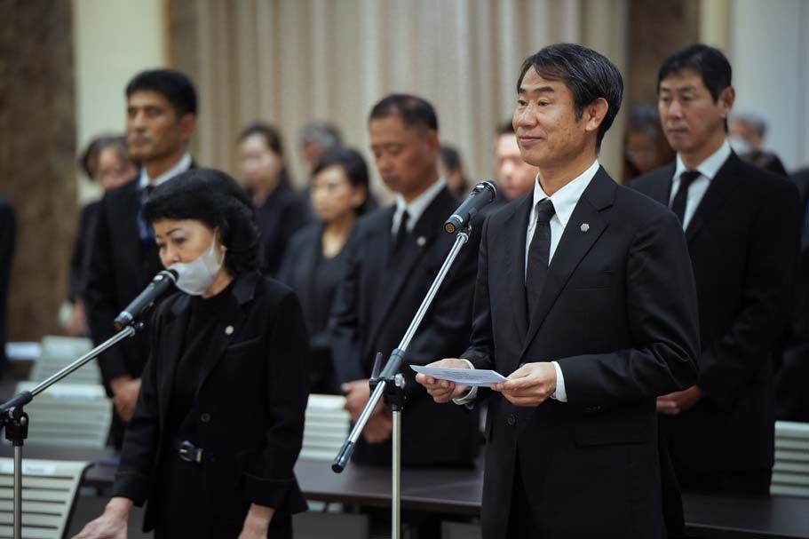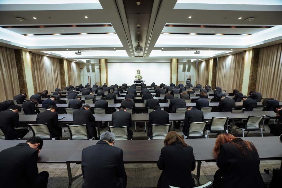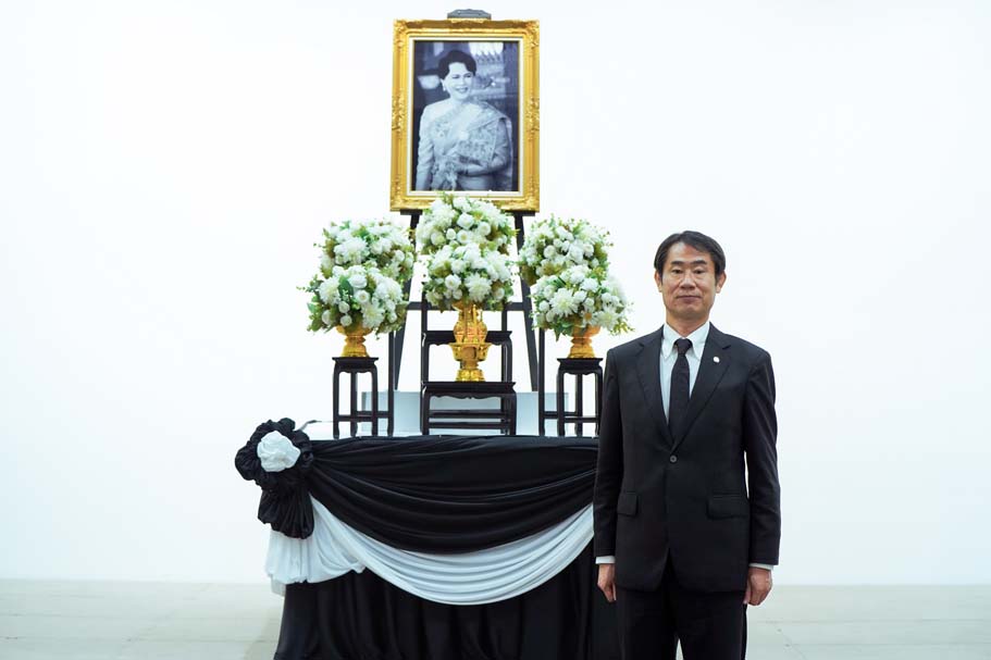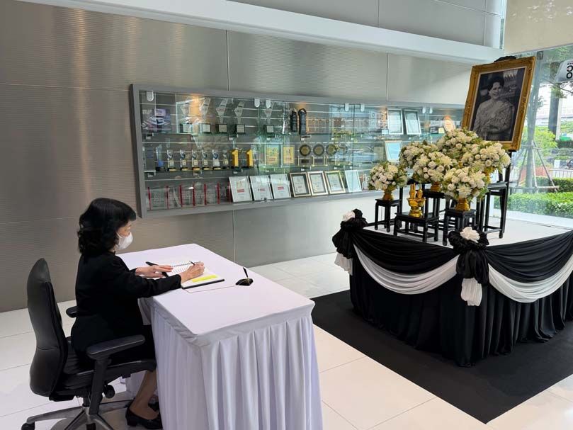 ในพิธีถวายอาลัยซึ่งจัดขึ้นที่ห้องประชุมชั้น 20 ของอาคารสำนักงานใหญ่ มร. ทาคาชิ ฮาตะ กรรมการผู้จัดการ บริษัท ตรีเพชรอีซูซุเซลส์ จำกัด เป็นผู้กล่าวนำ โดยมี คณะผู้บริหารของบริษัทในกลุ่มตรีเพชร ร่วมยืนสงบนิ่งเป็นเวลา 3 นาที หลังจากนั้นได้ร่วมกันร้องเพลงสรรเสริญพระบารมี และก้มศีรษะกราบสงบนิ่งเป็นเวลา 30 วินาที เพื่อถวายบังคมและน้อมสำนึกในพระมหากรุณาธิคุณอันหาที่สุดมิได้ของสมเด็จพระนางเจ้าสิริกิติ์ พระบรมราชินีนาถ พระบรมราชชนีพันปีหลวง ที่ทรงมีต่อทั้งปวงชนชาวไทยและประเทศไทยตลอดพระชนม์ชีพของพระองค์ท่าน