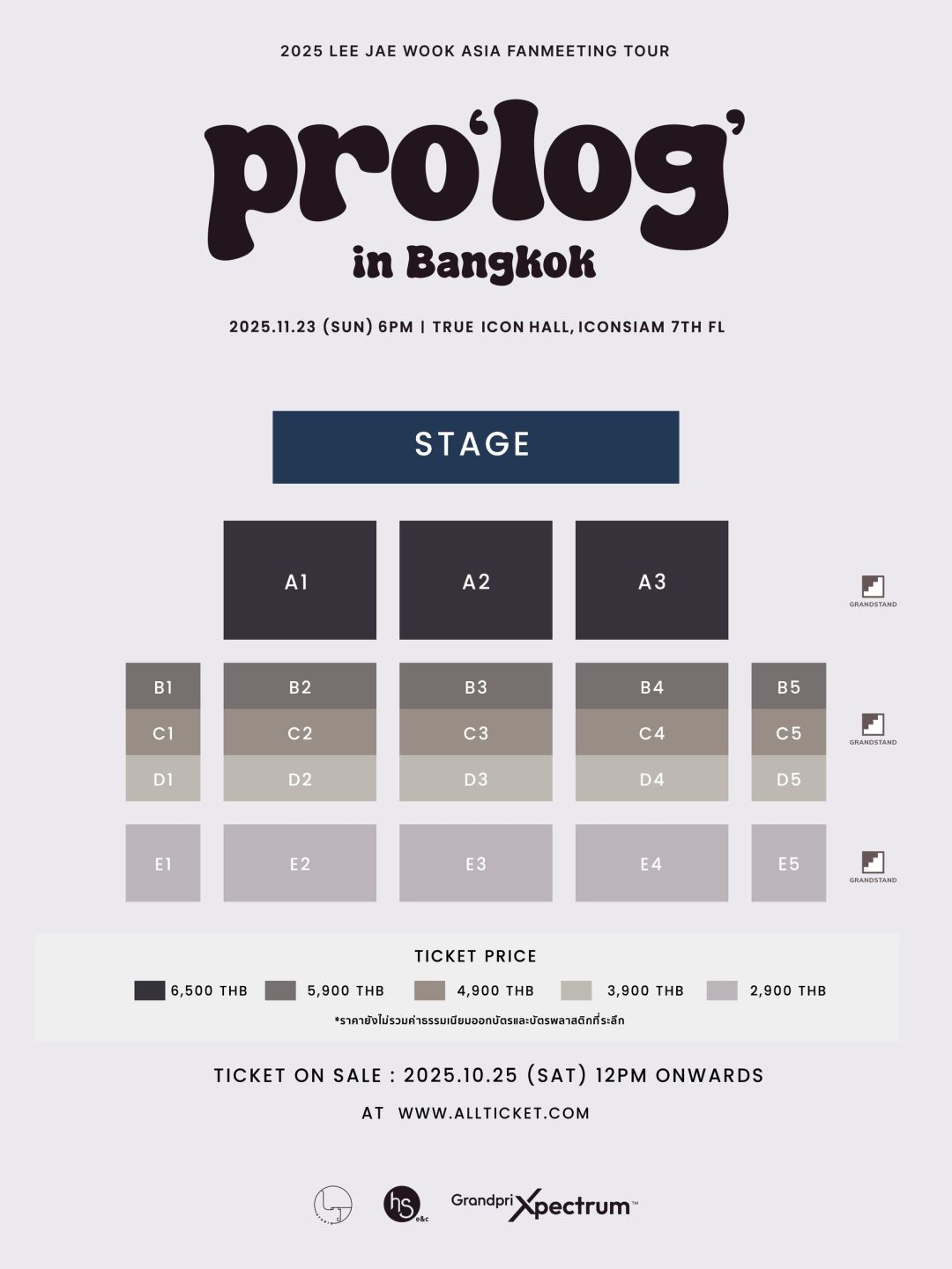 สำหรับบัตรเข้าชมงานเปิดจำหน่ายแล้ววันนี้ผ่านทาง เคาน์เตอร์เซอร์วิสออลล์ทิคเก็ต ในร้าน 7-Eleven ทุกสาขาทั่วประเทศ และทางเว็บไซต์ www.allticket.com/event/LEEJAEWOOK_prolog_in_Bangkok ราคาบัตรมีให้เลือกตั้งแต่ 6,500 / 5,900 / 4,900 / 3,900 และ 2,900 บาท พร้อมสิทธิพิเศษมากมายสำหรับผู้เข้าร่วมงาน สามารถติดตามรายละเอียดเพิ่มเติมได้ทางทุกช่องทางโซเชียลมีเดียของ “Grandprix Xpectrum” บนทุกแพลตฟอร์ม