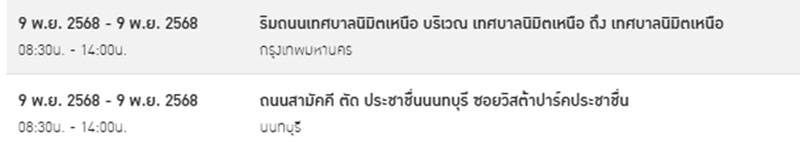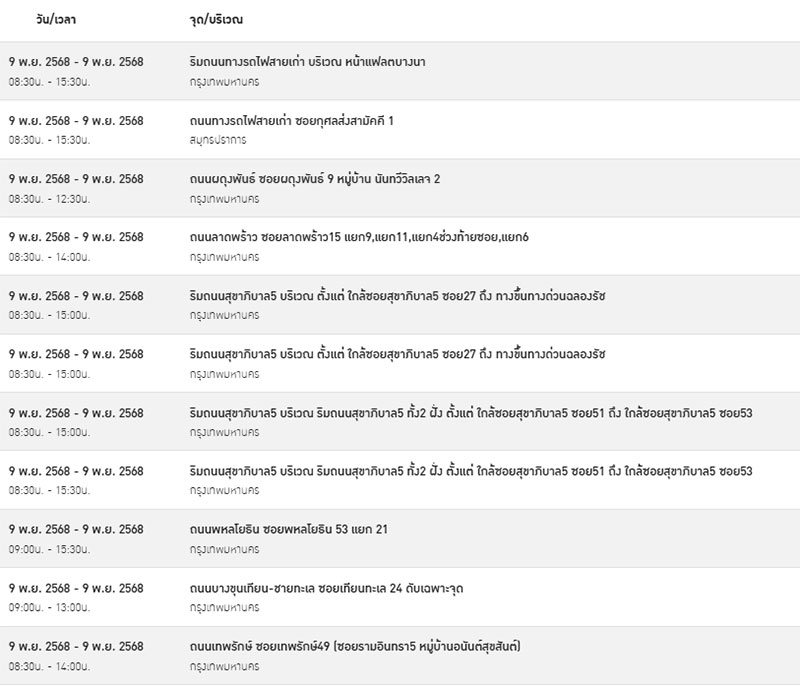ถนนลาดพร้าว ตั้งแต่ ซอยลาดพร้าว48 แยก 3 ถึง ซอยลาดพร้าว48 แยก 12 เวลา 08.30น. – 15.30น.