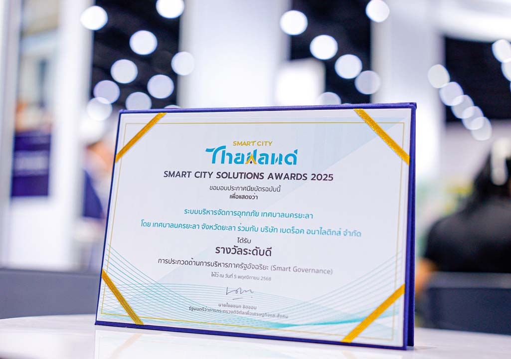 เบดร็อค อนาไลติกส์ ยังสามารถคว้ารางวัลระดับดี จากผลงาน "เทคโนโลยีบริหารจัดการภัยพิบัติอัจฉริยะ (Smart Disaster Management Solution)" ที่พัฒนาร่วมกับเทศบาลนครยะลา เพื่อยกระดับการรับมืออุทกภัยในพื้นที่