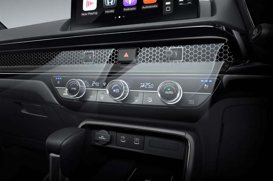 ห้องโดยสารกว้างขวาง มาพร้อมเบาะโดยสารแบบ 5 ที่นั่ง ดีไซน์มาเพื่อความสะดวกสบายสำหรับทุกคนในทุกการเดินทาง พร้อมฟีเจอร์ต่าง ๆ ที่ใช้งานง่าย เพื่อไลฟ์สไตล์ที่ลงตัวในทุกวัน อาทิ ระบบแสดงข้อมูลบนกระจกหน้า (Head-up Display) (เฉพาะรุ่น e:HEV RS และ e:HEV RS 4WD) ระบบบันทึกตำแหน่งเบาะนั่งของผู้ขับขี่ (Driver Memory Seat) ระบบฟอกอากาศในห้องโดยสาร Plasmacluster (รุ่น e:HEV ES, e:HEV HuNT, e:HEV RS, และ e:HEV RS 4WD) หลังคาซันรูฟไฟฟ้าแบบพาโนรามา (รุ่น e:HEV ES, e:HEV HuNT, e:HEV RS, และ e:HEV RS 4WD) ระบบเครื่องเสียงหน้าจอสัมผัสขนาด 9 นิ้ว แบบ Advanced Touch รองรับ Apple CarPlay และ Android AutoTM แบบไร้สาย พร้อมรองรับระบบสั่งการด้วยเสียง Siri และ Android Auto อุปกรณ์ชาร์จไฟแบบไร้สาย (Wireless Charger) ช่องเชื่อมต่อ USB 4 ตำแหน่ง