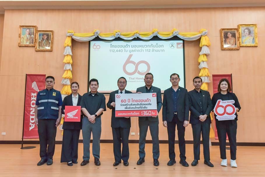 มร.ยูอิจิ ชิมิซุ ประธานกรรมการบริหาร บริษัท ไทยฮอนด้า จำกัด กล่าวว่า “เนื่องในโอกาสครบรอบ 60 ปีของไทยฮอนด้า เราอยากแสดงความขอบคุณและตอบแทนสังคมไทย ภายใต้แนวคิด ‘60 ปี ไทยฮอนด้า ขับขี่ปลอดภัย เพื่อสังคมไทยที่ยั่งยืน’ ด้วยการส่งมอบหมวกนิรภัยจำนวน 60,000 ใบ มูลค่า 60 ล้านบาท ร่วมกับผู้จำหน่ายฮอนด้าทั่วประเทศที่สมทบเพิ่มเติมอีก 52,440 ใบ รวมเป็น 112,440 ใบ มูลค่ากว่า 112 ล้านบาท ครอบคลุมทั้ง 77 จังหวัดทั่วประเทศ