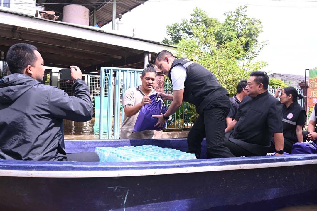 จากนั้น คณะของรัฐมนตรีว่าการกระทรวงอุตสาหกรรม ยังลงพื้นที่ติดตามสถานการณ์อุทกภัย ในเขตเทศบาลตำบลปราสาททอง รวมทั้งมอบถุงยังชีพพร้อมเครื่องดื่ม จำนวนกว่า 470 ชุด ให้กับประชาชนซึ่งถูกน้ำท่วมอย่างหนัก และที่พักอาศัยเสียหายอีกด้วย โดยเฉพาะที่ตำบลบางบ้านเลน อำเภอบางปะอิน จังหวัดพระนครศรีอยุธยา บ้านเรือนกว่า 35 หลังคาเรือน ถูกน้ำท่วมสูงกว่า 2 เมตร